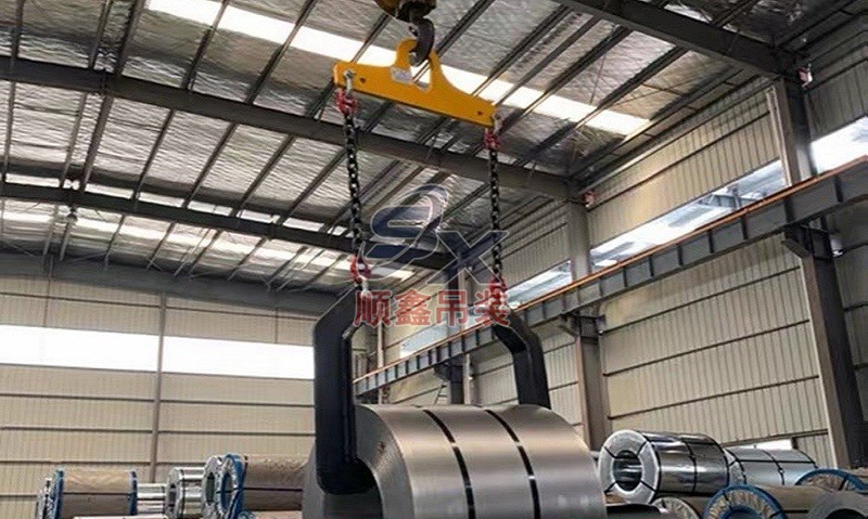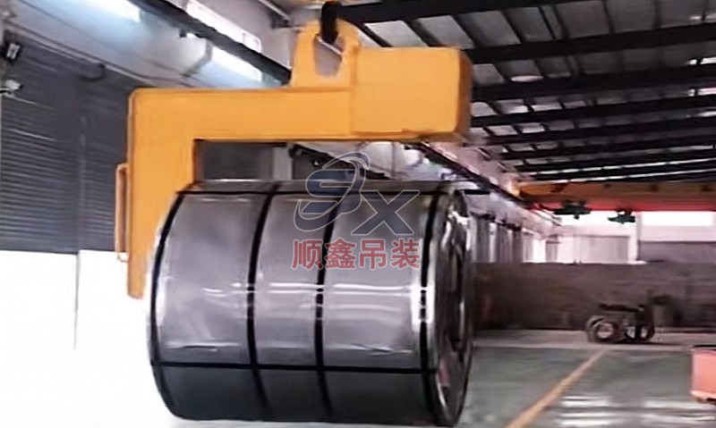 翻轉(zhuǎn)吊具通過機(jī)械剪力原理,對立式擺放的卷鋼進(jìn)行單邊抓取,來完成卷鋼的裝卸,當(dāng)改變重力點(diǎn)時,可以對卷鋼進(jìn)行翻轉(zhuǎn),作業(yè)時不傷鋼卷。其吊耳采用加厚處理,焊縫飽滿牢固、延長使用壽命。